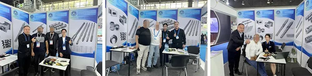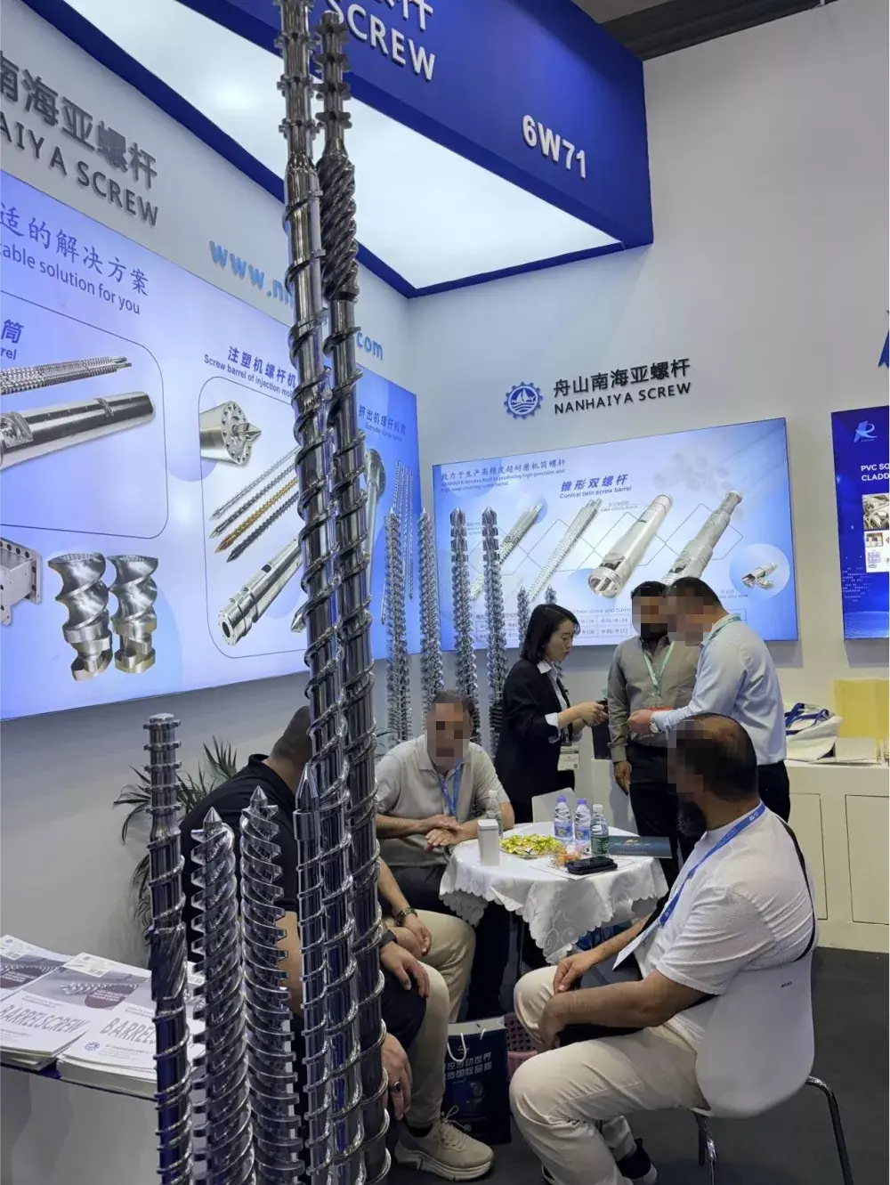 Pachiratidziro, theZhoushan Nanhaiyamudumba makanga muzere nevashanyi. Zvigadzirwa zvenyeredzi zvakaratidzwa pachiratidziro, senge dual-alloy screw nedhiramu uye nitrided screw nedhiramu, zvakakwezva kutarisisa kwakapararira nemaitiro ekuita anodarika zviyero zveindasitiri. Zvigadzirwa zveNanhaiya zvese zvakavakwa kubva ku38CrMoAl alloy simbi uye zvinogadzirwa kuburikidza nemaitiro akati wandei, anosanganisira kudzima uye kupisa, hunhu, uye nemachini chaiwo. Kunyanya, chiteshi chekuburitsa dhiramu, chikamu chisina njodzi, chinoratidzira hunyanzvi, yakazara-denderedzwa carbide spray coating, ichiwana kuomarara kwemukati kwe62HRC, kuvandudzwa kwakakosha pamusoro peavhareji yeindasitiri ye58HRC.
